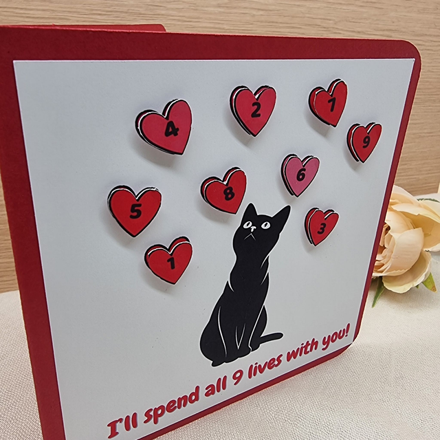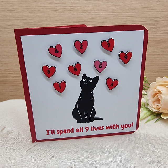 Valentine card from the cat with a custom message printed inside, as discussed.